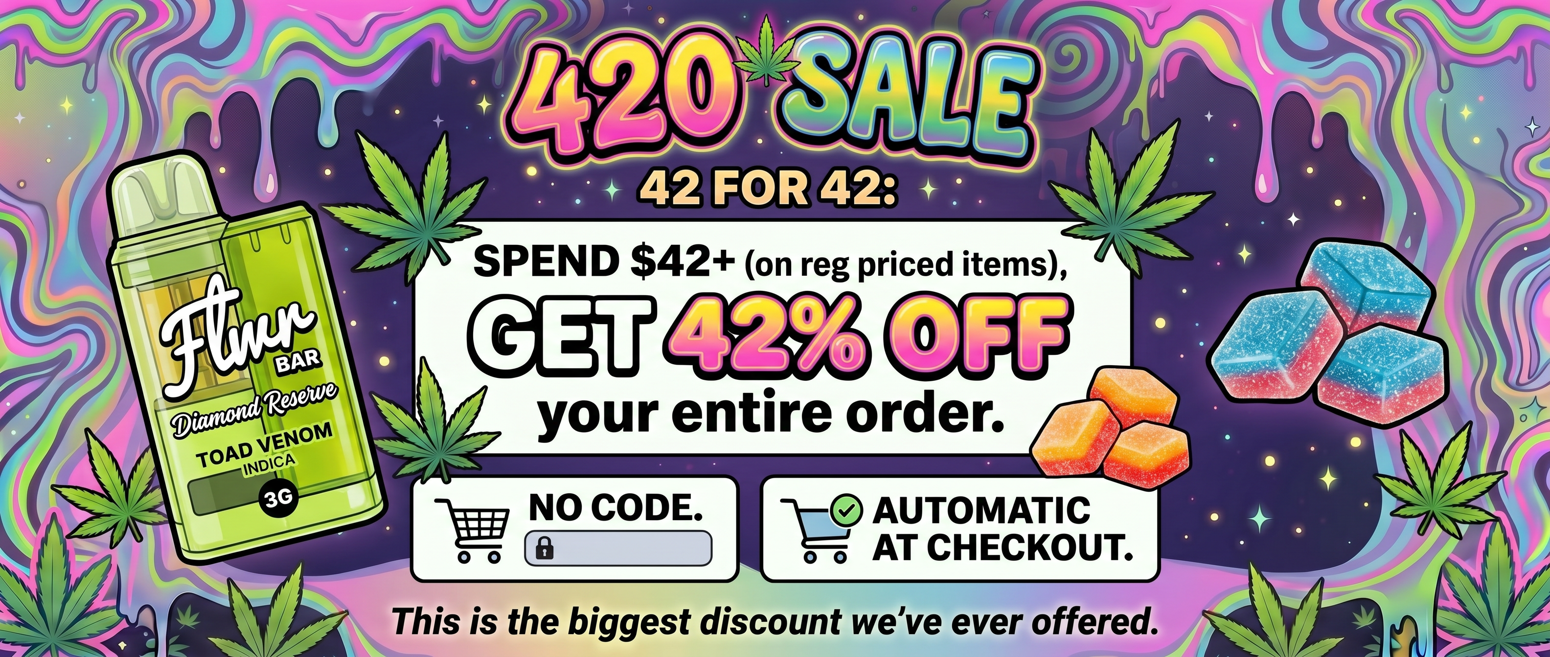 Three Layers of flavor- Bomb Pop is our most stacked gummies yet. Each limited-edition 2-count bag delivers 1,000mg per gummy with a powerful blend of Delta-8, Delta-9, and THCP.
