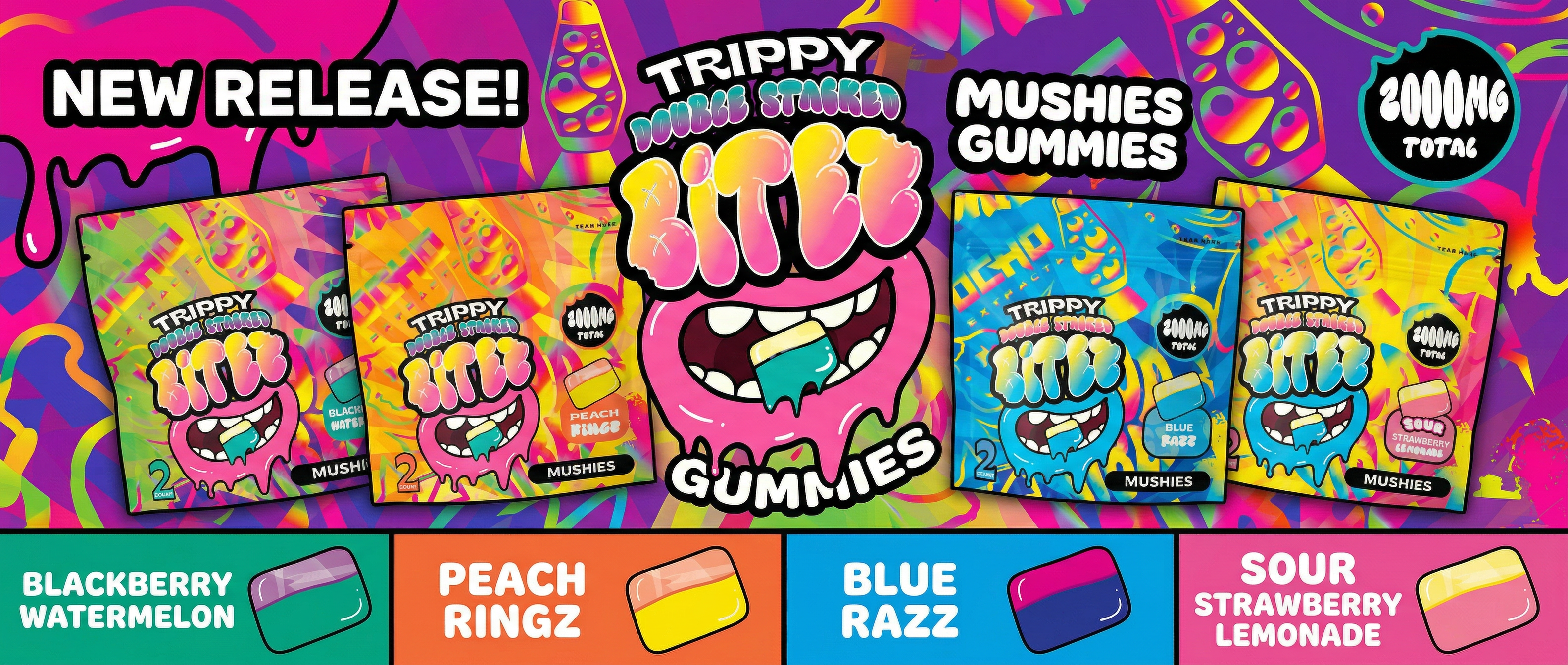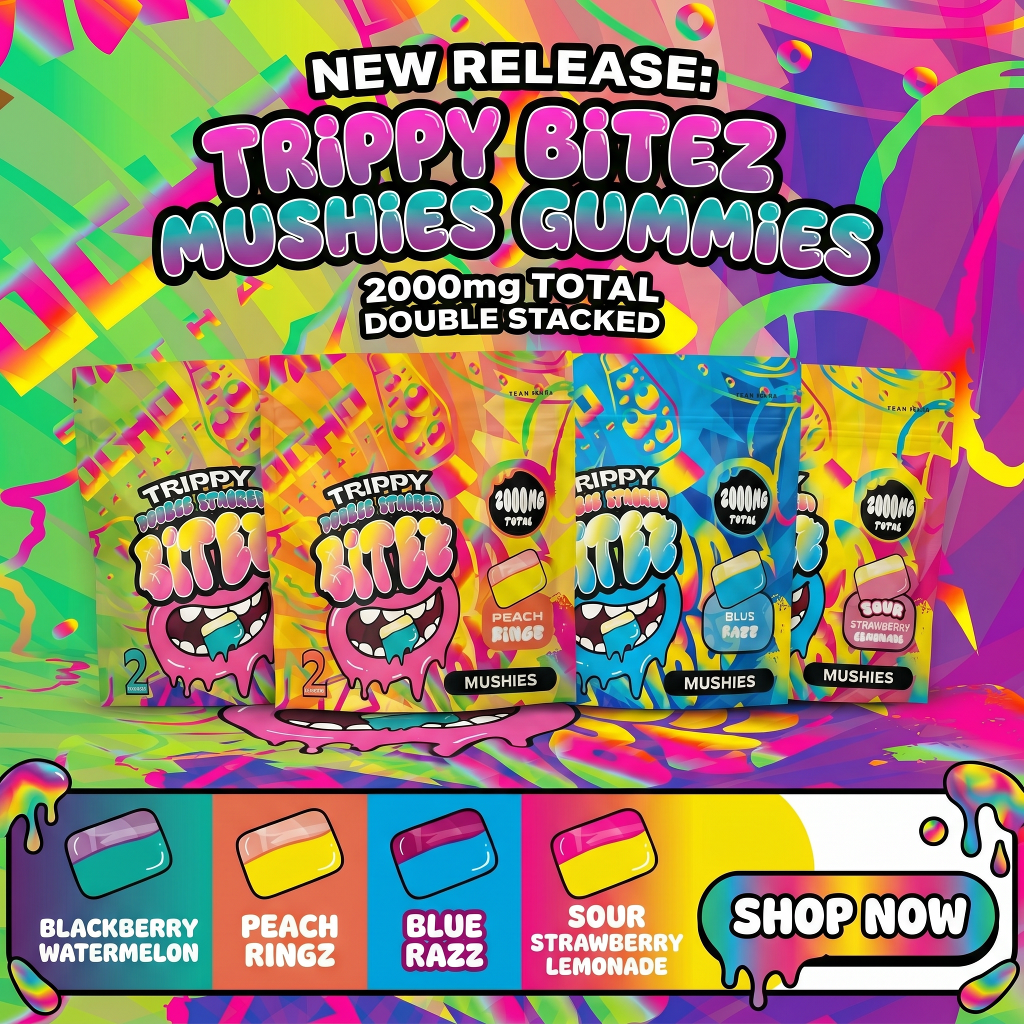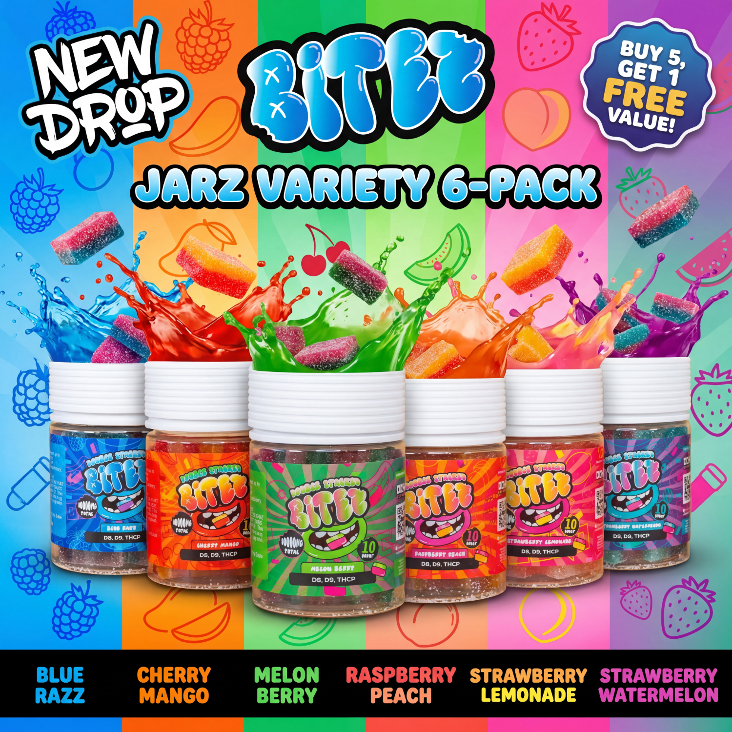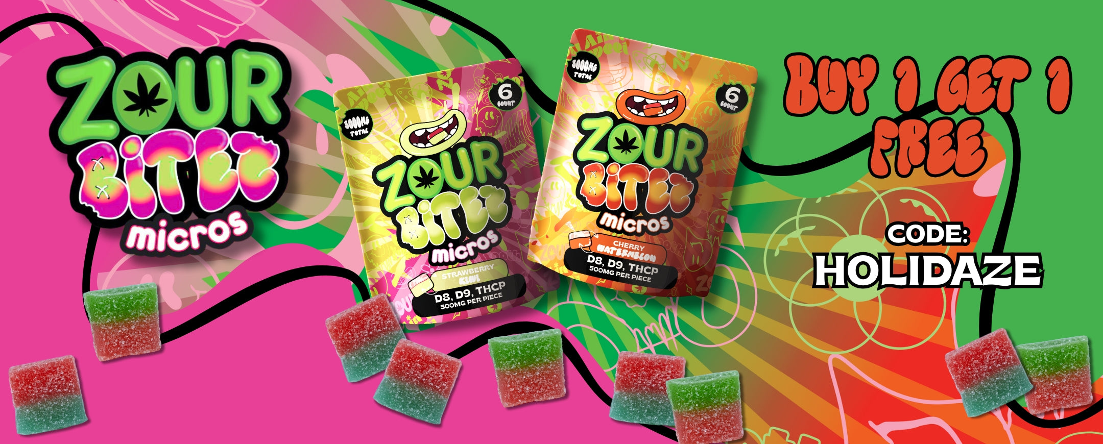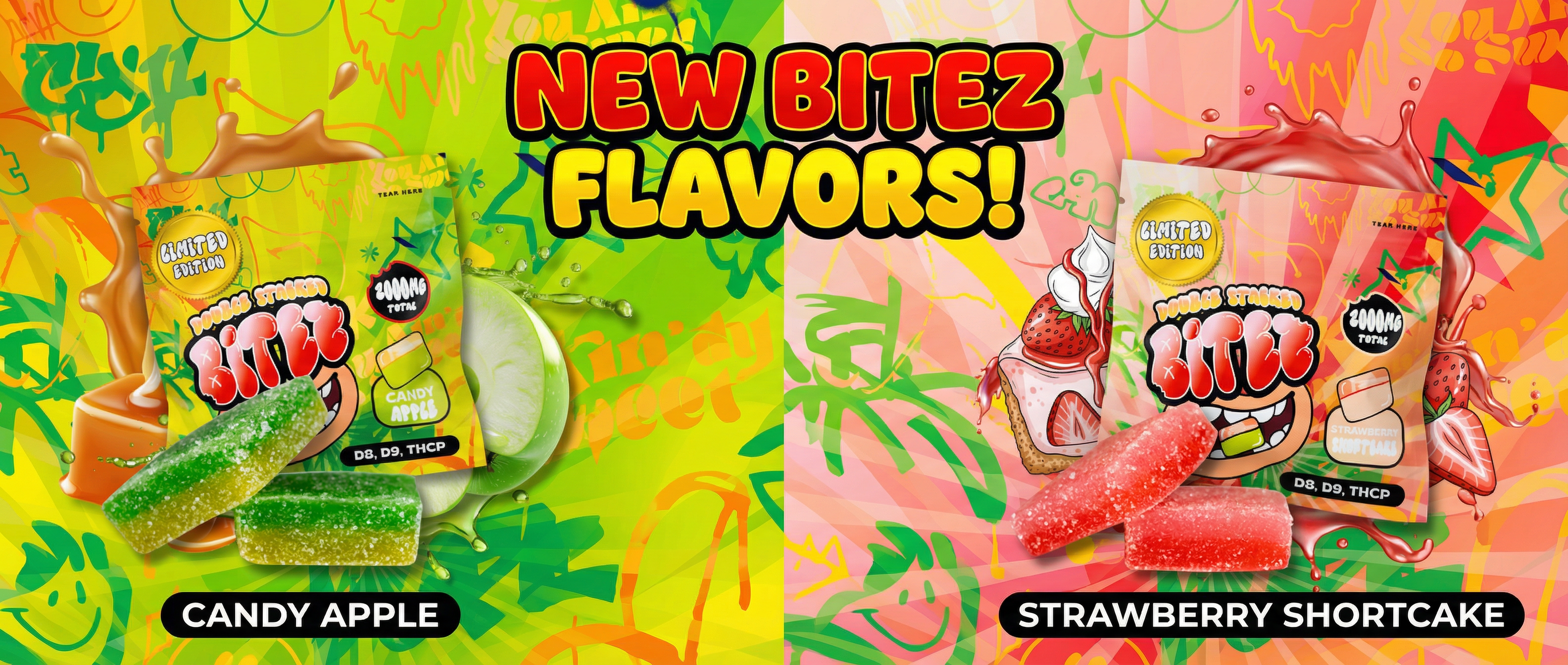 Experience the tasty fusion of two flavors at once in our Double-Stacked BITEZ gummies, each gourmet treat packed with Delta-8, Delta-9, and THCP for a refreshingly potent bite! Available in 1,000MG and 500MG doses and eight mouthwatering flavors.